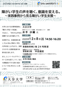 【12月8日(月)】2025年度大分大学FD・SD活動「障がい学生支援」開催のご案内